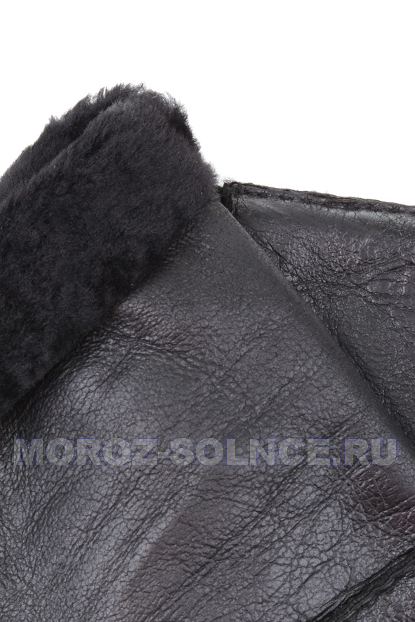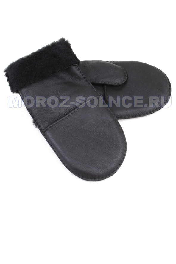 Черные варежки из мягкой матовой кожи с натуральным мехом.